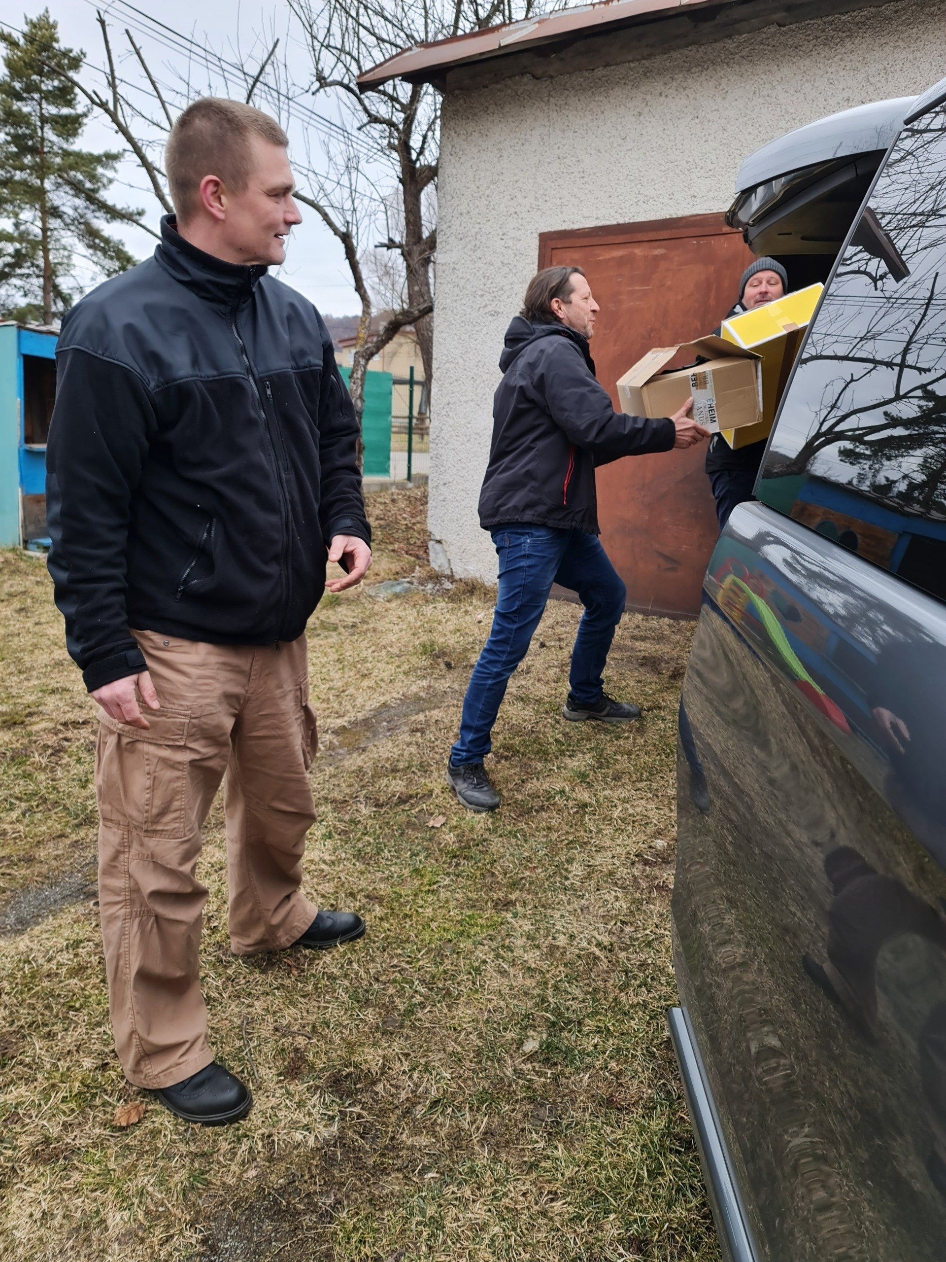 Am Freitag, den 4.3. starten am Nachmittag die Vorbereitungen. Sachspenden aufladen, Medikamente und Ausrüstung besorgen, Proviant organisieren, um dann gegen 21 Uhr gemeinsam von Hassfurt aus Richtung Ukraine zu starten. Die genaue Reiseroute stand bis zum letzten Moment nicht fest, da der schnelle Weitertransport ins Kriegsgebiet gewährleistet sein sollte. Aus diesem Grund kamen in Abstimmung mit unserer Kontaktperson in der Ukraine zwei kleinere Grenzübergange an der slowakisch-ukrainischen Grenze in Betracht. Gesagt getan. Angekommen, konnten wir die Kleiderspenden direkt an den Ersthilfestellen vor Ort abgeben. Medikamente, Nahrung und Ausrüstung wurden an anderer Stelle für einen späteren Transport ins Kriegsgebiet erstmal zwischengelagert.