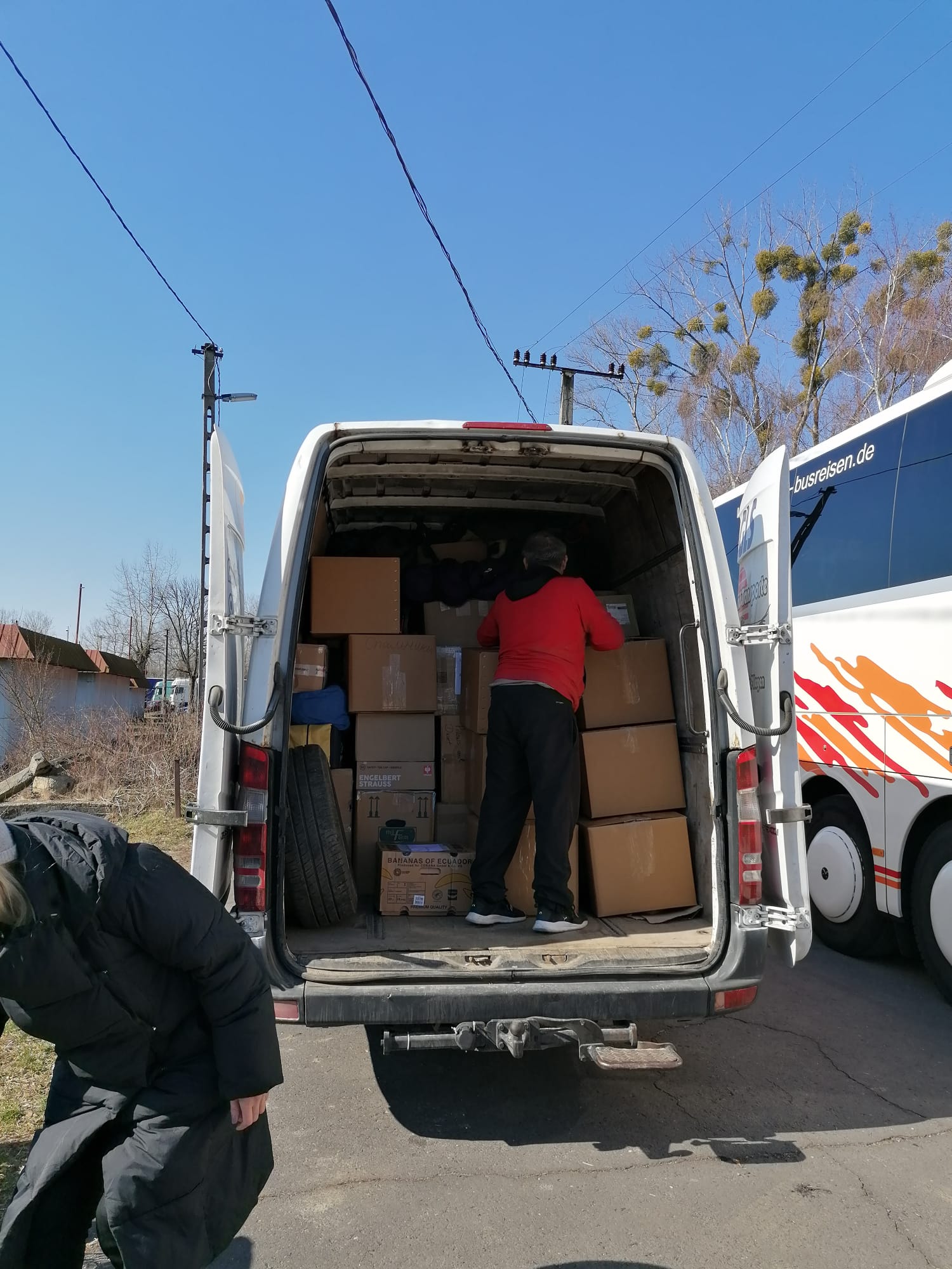У п'ятницю, 4 березня починається підготовка до виїзду в другій половині дня. Сортування і пакування гуманітарної допомоги, завантаження коробок з пожертвуваннями, придбання ліків та обладнання, закупівля провізії. Біля 21:00 ми вирушили разом з Гасфурта в бік України. Точний маршрут не був визначений до останнього моменту, оскільки мав бути гарантований швидкий транспорт до зони бойових дій. З цієї причини за погодженням з нашою контактною особою в Україні були розглянуті два менших прикордонних перехода на словацько-українському кордоні. Сказано і зроблено. Прибувши, ми передали пожертвуваний одяг безпосередньо в центри першої допомоги на місці. Ліки, продукти харчування та обладнання тимчасово зберігалися в іншому місці для подальшого транспортування в зону бойових дій.