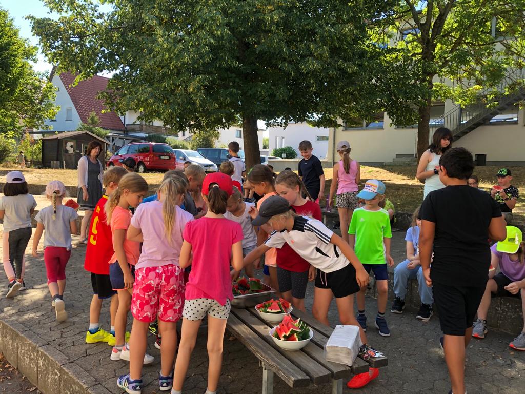 Кожен учень міг бігати, ходити або просто прогулюватися. Батьківська рада спонтанно підтримала нашу акцію, роздаючи шматочки дині - бажану прохолоду в ці спекотні дні. Щиро дякуємо за це!